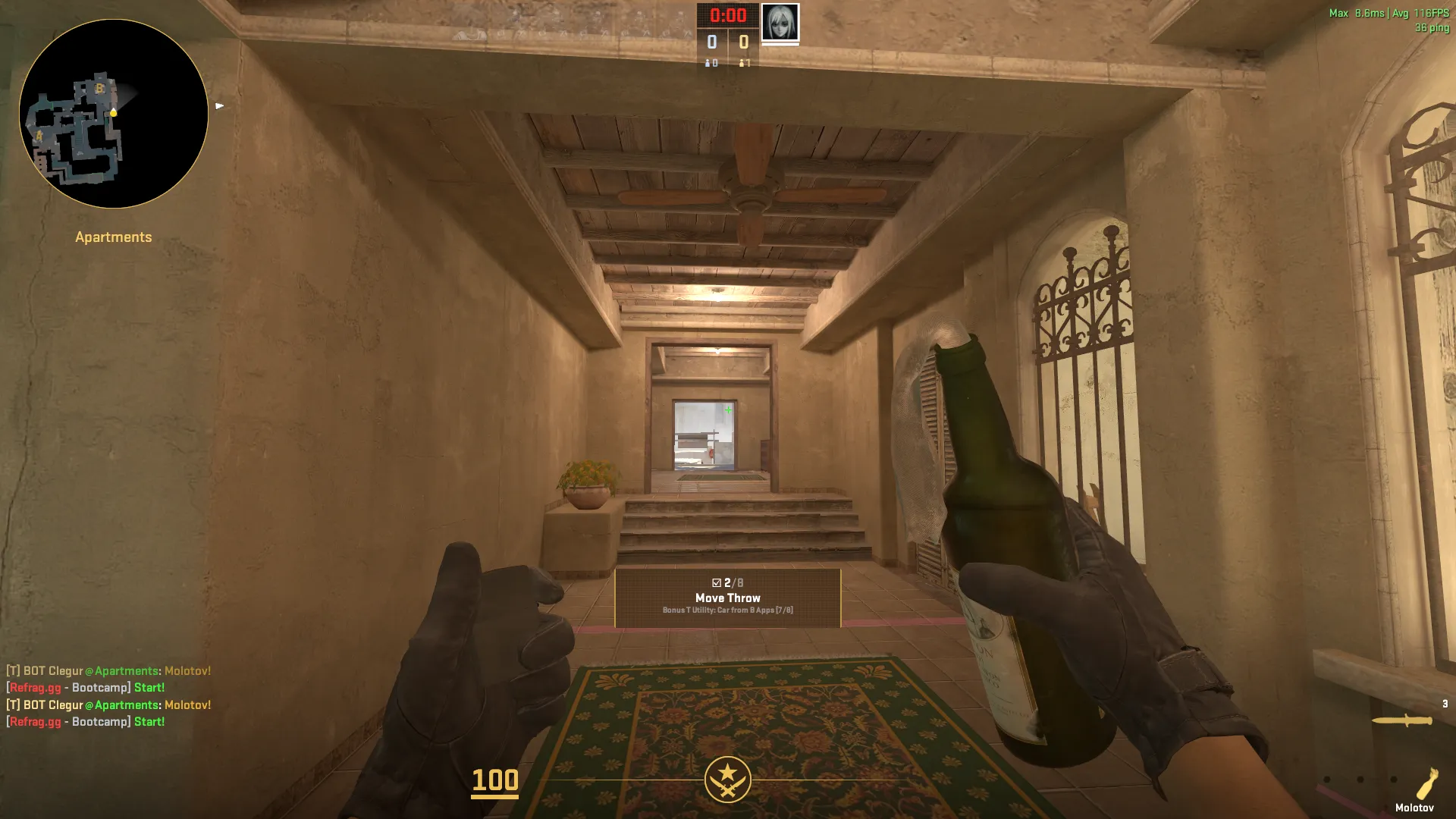 The apartments molotov complements the smoke by denying terrorist space and dealing damage to aggressive pushers. Thrown from B site toward the apartments entrance, this incendiary forces terrorists to either take damage or wait, buying crucial seconds for CT rotations. When watching CS2 matches today, count the seconds between utility deployment and terrorist commitment to understand economic pressure and time management.